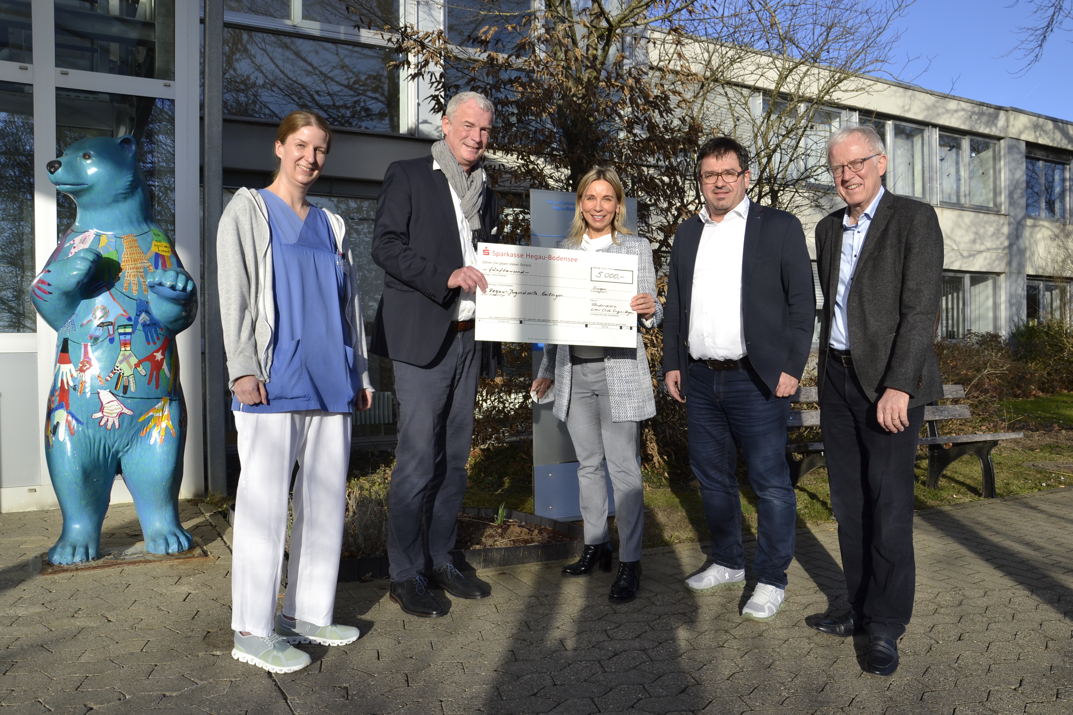 Der Lions-Club Singen-Hegau unterstützt das Hegau-Jugendwerk (HJW) mit einer dicken Spende: Präsident Markus Lauber, der Vorsitzende des Sozialausschusses Volker Oppermann und Pius Netzhammer, Vorsitzender des Fördervereins des Clubs, brachten einen symbolischen Scheck über 5000 Euro. Das Geld werde gezielt im Patientenbereich eingesetzt, versprach Barbara Martetschläger, kaufmännische Direktorin des Hegau-Jugendwerks.